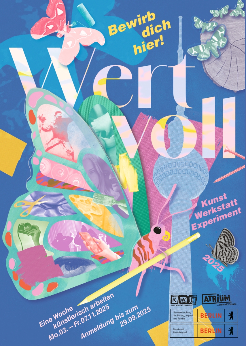 Fünf Tage lang – vom 3. bis 7. November 2025 – arbeitest Du im ATRIUM Reinickendorf unter Anleitung erfahrener Künstler*innen an Deinem Projekt.